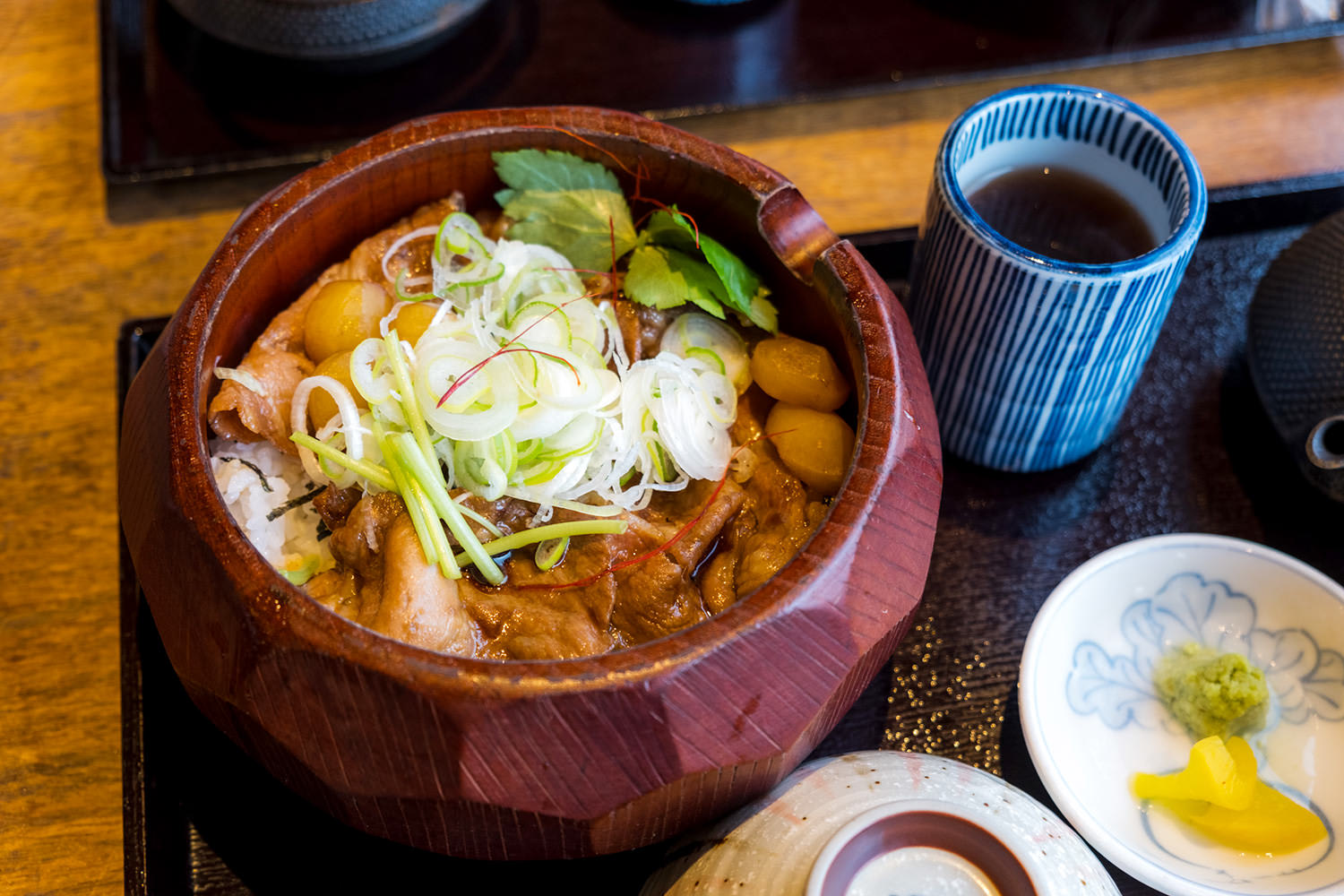 Aburaya is a robatayaki-style restaurant where food is cooked on a grill, adding a smoky and delicious flavor to each dish. Tonkurimabushi is a regional specialty of sweet and spicy boiled pork with chestnuts, served on top of a bed of rice, perfect for those who are looking for a filling and flavor-packed meal. The elegant interior of this former ryokan has been renovated with warm wooden furniture, flooring, and beams, all while offering a tranquil view of the garden and Ozu Castle from its windows. Sit back and enjoy meals that are prepared using locally sourced vegetables, fish, miso, soy sauce, rice, and other ingredients from Ehime, to enjoy the authentic taste of the region.