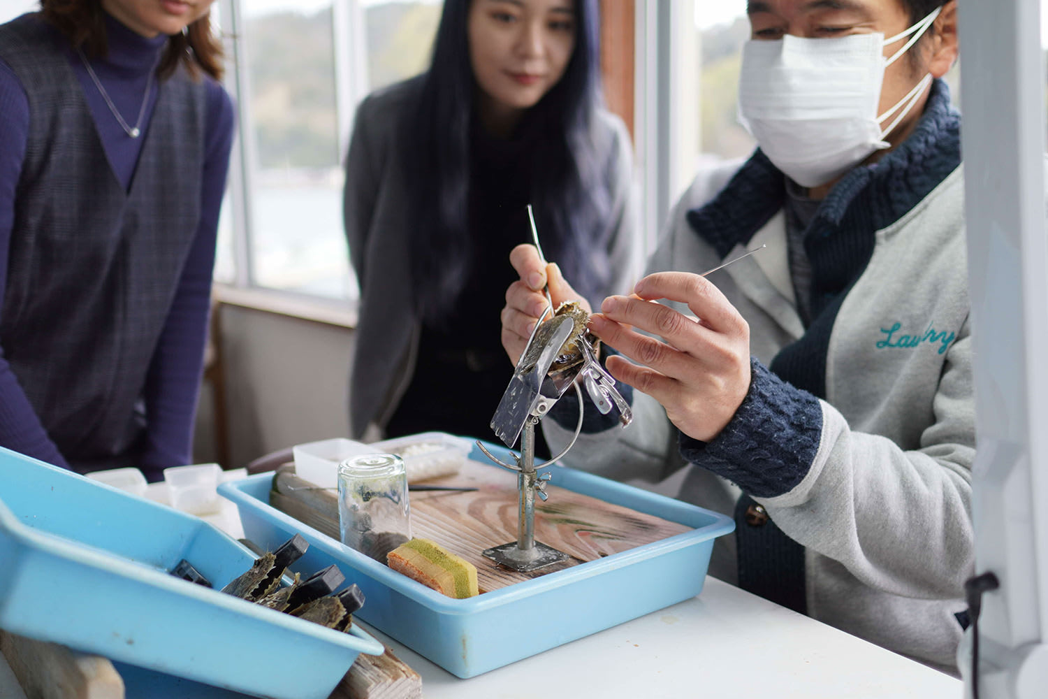 | 费用 | [仅含参观和体验]每人1080日元 [包含参观、体验和土特产]每人3240日元 ※自己采到的珍珠可以带回 |